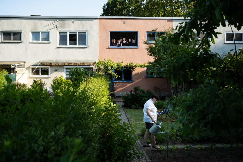 Architektur ist nicht nur „gebauter Raum“, sondern schließt immer auch das Verhältnis zwischen Raum und Gesellschaft mit ein. Architektur reproduziert Formen von gesellschaftlichen Machtstrukturen, von geschlechtlich geprägten Hierarchien und zwischenmenschlichen Netzwerken. Im Zusammenspiel mit dem Jugendchor der Kreismusikschule Helmstedt, live-elektronischer Musik und ortsspezifischer Performance gibt das Kollektiv Untere Reklamationsbehörde (Julia Mihály & Maria Huber) aktuellen und historischen feministischen Perspektiven auf Wohnraumknappheit und Geographien des Alltags eine Stimme: Wie wollen wir leben und welche gebauten Räume brauchen wir dafür? Wie können wir unsere privaten Orte für freundschaftliche Netzwerke öffnen? Kann ich meiner Nachbar:in bei ihrem Alltag zuhören? Wie klingt das Echo von Einsamkeit? Aus den Recherchen rund um Wohnutopien in Frankfurt a. M., kritischen Interviews mit Hausbesetzerinnen sowie autobiographischen Erzählungen eröffnen die Künstlerinnen einen spielerischen Diskursraum zum Thema Wohnen.